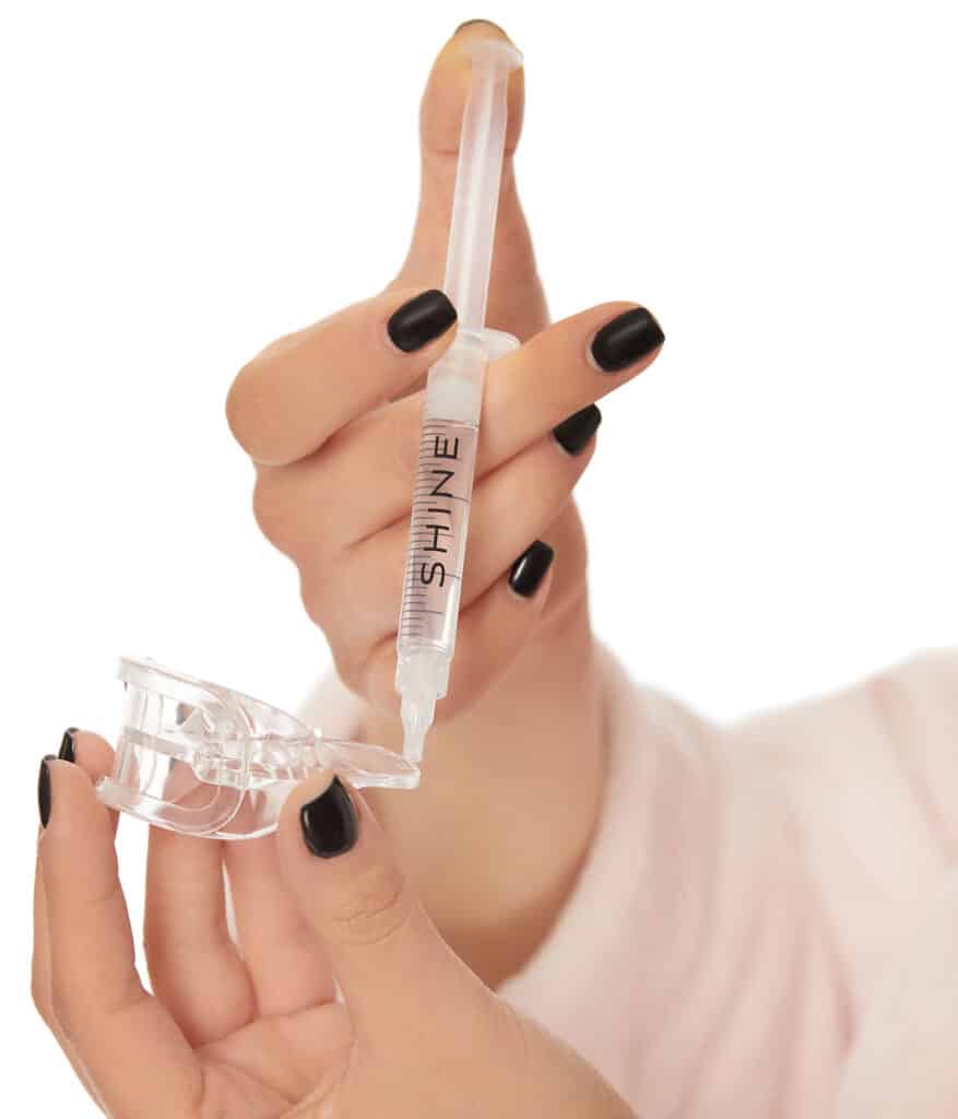 The SHINE® all in one professional teeth whitening system was designed by American dentists and leading engineers to deliver maximum results in 15 days, with each application taking just 8 to 30 minutes. Key natural ingredients ensure there is no pain or sensitivity caused throughout the process, while delivering guaranteed results of at least 3 shades whiter teeth.